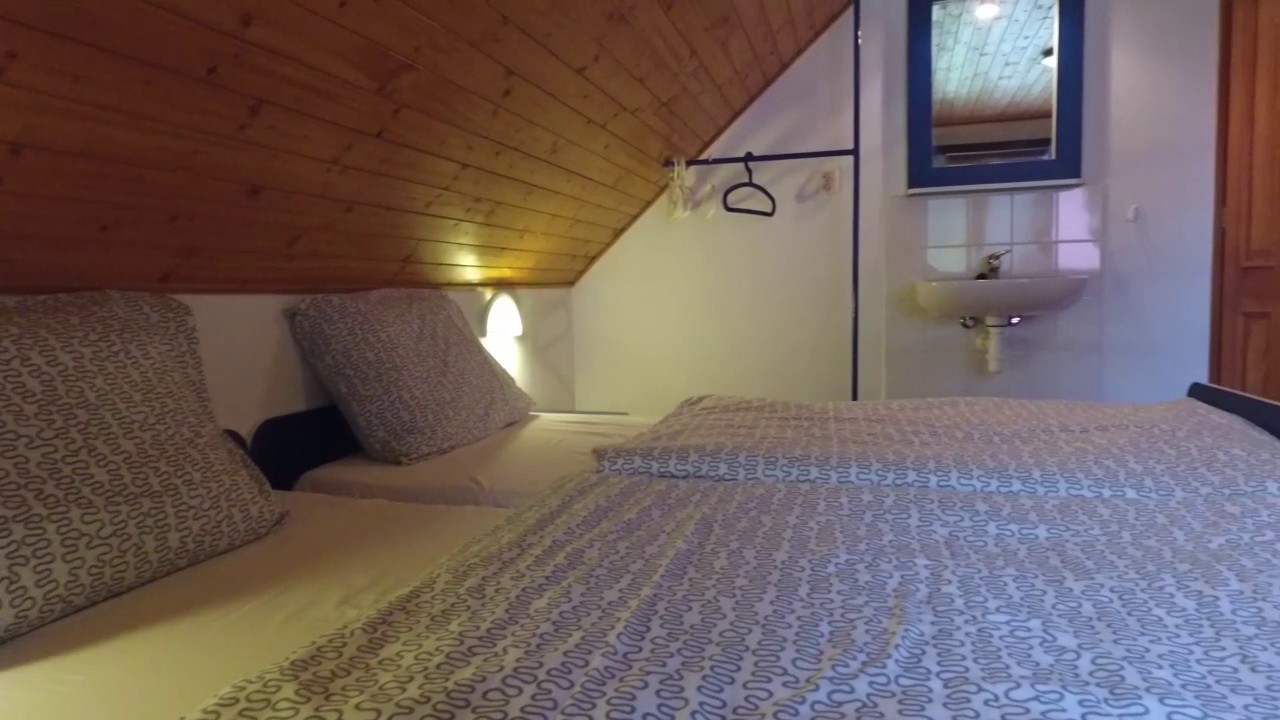 - Slaapkamer 2: Grote kamer voorzien van drie eenpersoonsbedden (90 x 200 cm).